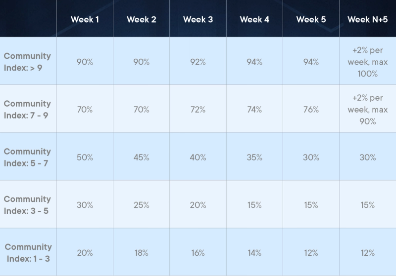 Simply, the higher the Community Index, and the longer it stays at high levels, the more fees we will use to buy back CHSB.