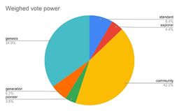 When taking the weight of votes into consideration, Community and Genesis premium users were the most influential, giving 42.2% and 34.9% of the total weighted votes. This is not surprising as these are the longest existing premium tiers.
