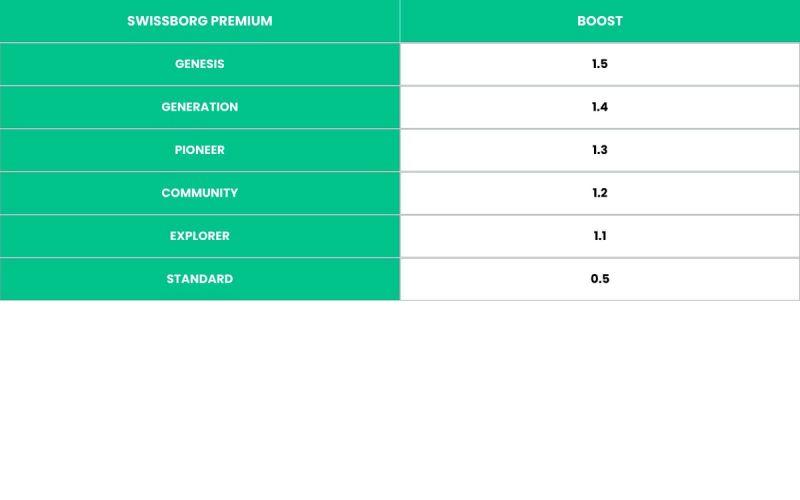We have adjusted the multiplier on your Premium Boost. Depending on the tier you have inside the SwissBorg app, we will be attributing a multiplier on the quantity of your holdings, the distribution is as follows: