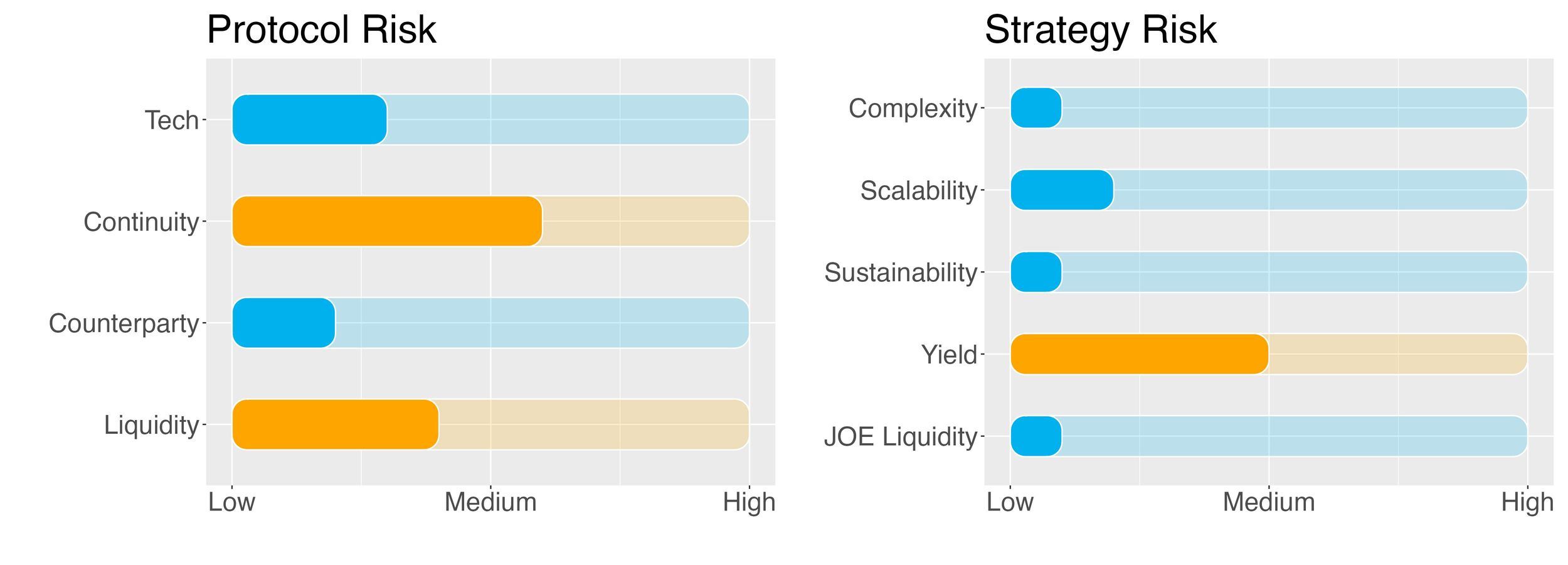 Yield risk is intended as the volatility of the expected yield on JOE. A time series of historical staking APY is not at our disposal so we conservatively give a medium risk rating.