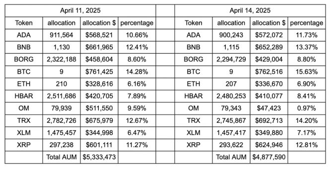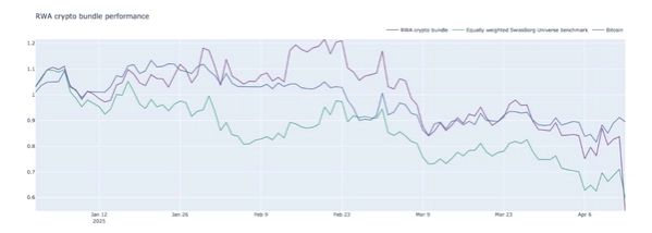 Before the OM incident, the RWA Bundle was delivering strong performance, consistently outperforming its benchmark (an equally weighted portfolio of all RWA-sector tokens listed on SwissBorg). Following the crash, the Bundle is now slightly underperforming. As of 15.04.25, its performance stands at -46.95%, compared to -42.09% for the benchmark.