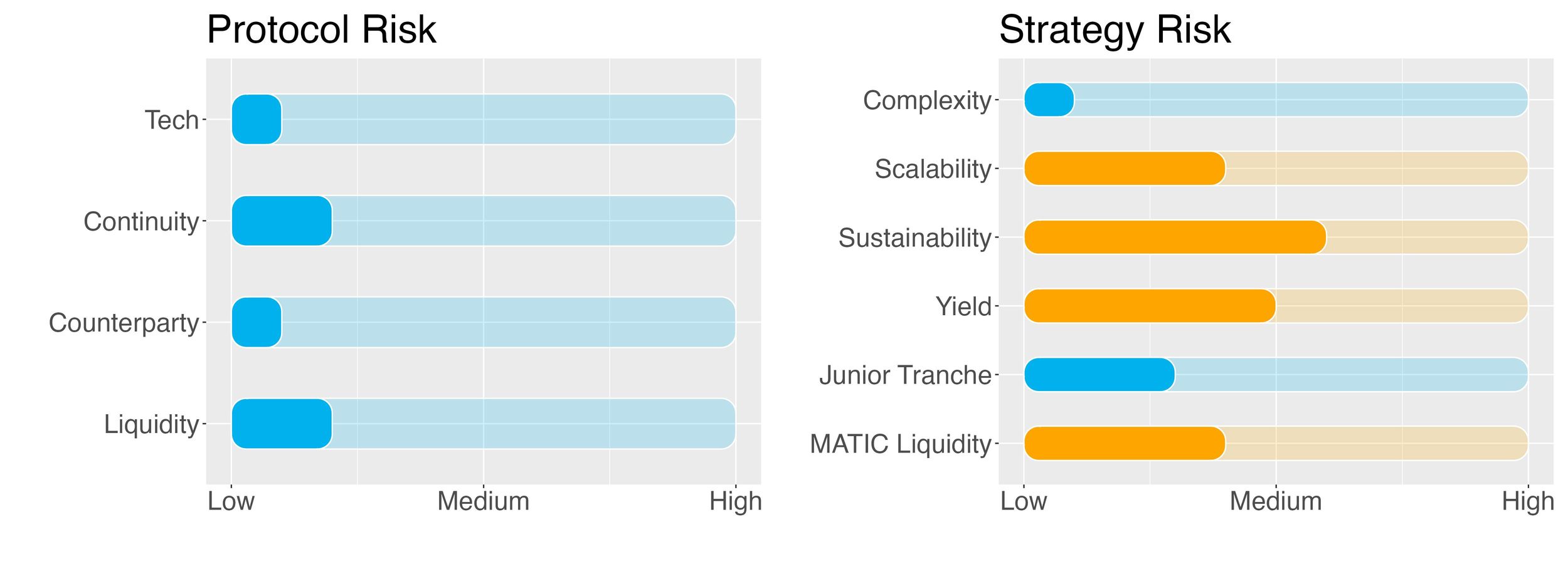 Idle Finance is a yield aggregator, that is, it provides strategies which help aggregate yield from diverse protocols. Because of this, the protocol has no counterparty risk, except for the tech risk assessed above. There are no borrowing/lending facilities or liquidity provisioning. Counterparty risk could be found in the protocols employed by the MATIC staking strategy, i.e. Lido.