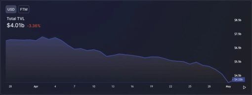 Andre Cronje, the renowned lead DeFi builder, suddenly exited crypto in mid-March, severely affecting the community and the Fantom ecosystem. $FTM’s price progressively crashed soon after, and projects in the Fantom ecosystem saw their price crash, too, with users consistently leaving protocols following the news. The downward trend in network activity and outflows from the blockchain continued in April, with a further loss of 30% TVL.