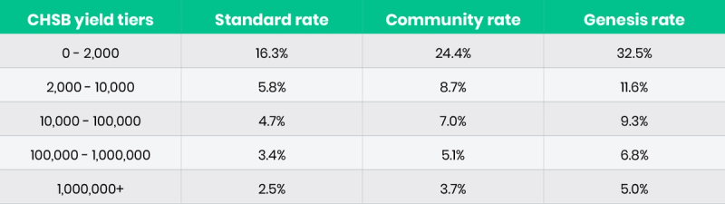 CHSB Yield 2.0 uses a tiers system, where the rewards offered to users are different for each level of CHSB they hold. The highest yields are available for each user’s first 2,000 CHSB, which is designed to help newer investors grow their wealth faster and motivate more investors to join the SwissBorg ecosystem.