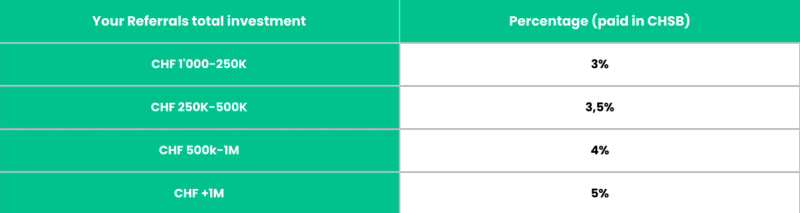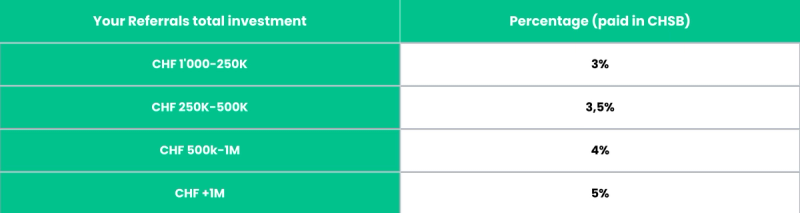 On top of earning a hefty amount of investment rewards - if by 31/01/23 you are among the top 100 referral leaders, you can also get your slice of the 100'000 CHSB prize pot!