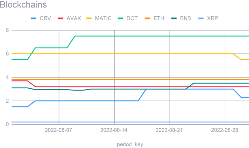 The amount of each wallet has remained stable, with a slight reduction in the USDc yield and an increase in the BTC yield, which is indeed a coin more adopted in uncertain markets. Matic wallet also gained some significant AuM as it became more and more popular throughout this summer. In terms of the native chain tokens, Matic and Polkadot remained the most profitable ones, with the latest reaching first place in APY. As described below, those are among the most secure to generate yield.
