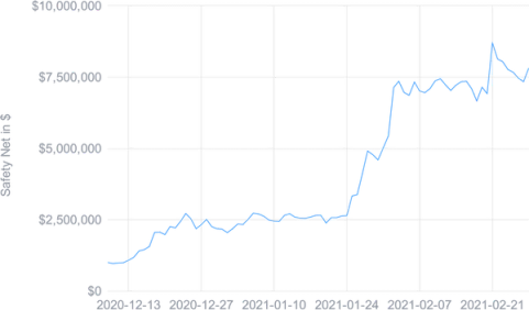 The Safety Net Program was triggered on February 9th following the economical attack of BT.Finance. Thanks to adequate risk management, the Smart Yield had very little exposure to the BT.Finance protocol, so the risk was fully covered by the Safety Net Program at a cost of $86,592.95. Due to the performance of the CHSB token throughout the month, alongside the increased use of the Smart Yield wallet, the Safety Net Program still experienced net growth of $2,813,000, and had a value of $7,820,687 at the end of the month.