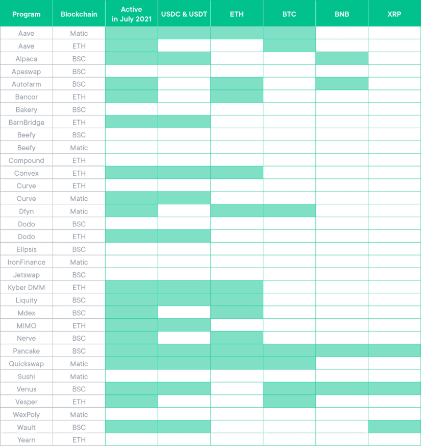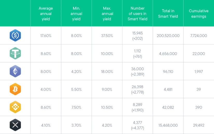 For clarification and a better overview of all the yield wallets, we have restructured the information presented in this section with a table that summarises the different performance of the Smart Yield wallets. With the recovery of the BTC and ETH price, we have seen a slowdown in the growth of the USDC Smart Yield wallet while BTC, ETH and BNB have shown significant growth in terms of number of users using the different Smart Yield. However, the amount in the USDC Smart Yield stayed relatively stable, which highlights the fact that users are still diversifying their wealth in unpredictable market conditions. In August, several milestones will be reached, with more than 8M in USDC, 2000 ETH and 40 BTC being earned by our users since the Smart Yield wallets launched.