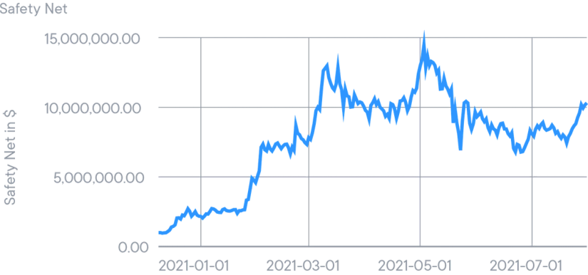 The Safety Net is a common pot for all Smart Yield wallets and therefore benefits from the yield of all wallets. With the compound growth of the other Smart Yield wallets and the recovery of the market, the Safety Net is above US10 million at the time of writing.