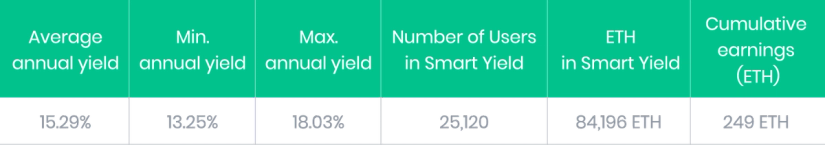 Since its launch, the Smart Yield wallet on Ethereum has delivered an average yield of 15.2%. Smart Yield is therefore in an extremely competitive position in the market for Ether with stable and significant yields.