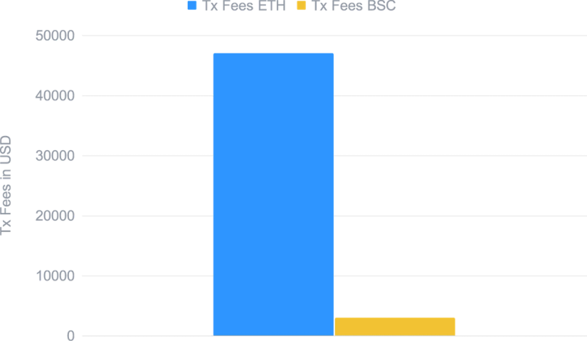 Since gas fees are much cheaper in BSC as opposed to ETH, this facilitates the creation of a more dynamic strategy that increases returns for the program (i.e more frequent harvesting). This is highlighted in the chart of the strategy optimiser transactions over time.