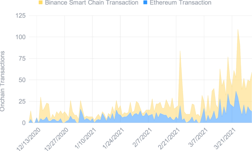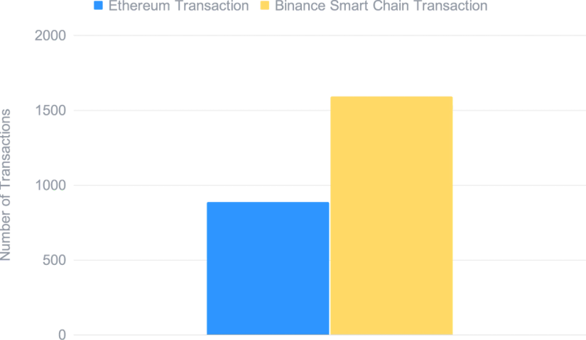 Thus, as shown below, the number of transactions have significantly increased with more than 1,200 transactions on the Binance Smart Chain and Ethereum blockchain. This is a 100% increase on the total number of transactions recorded since the Smart Yield wallets were launched.