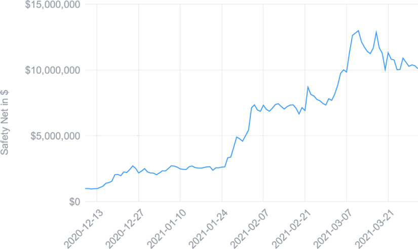 The Safety Net is a common pot for all Smart Yield wallets and therefore benefits from the yield of all wallets. Thus, with the arrival of Ether as well as the compound growth of USDC and a significant increase in the price of CHSB, the Safety Net is above $10 million at the time of writing.