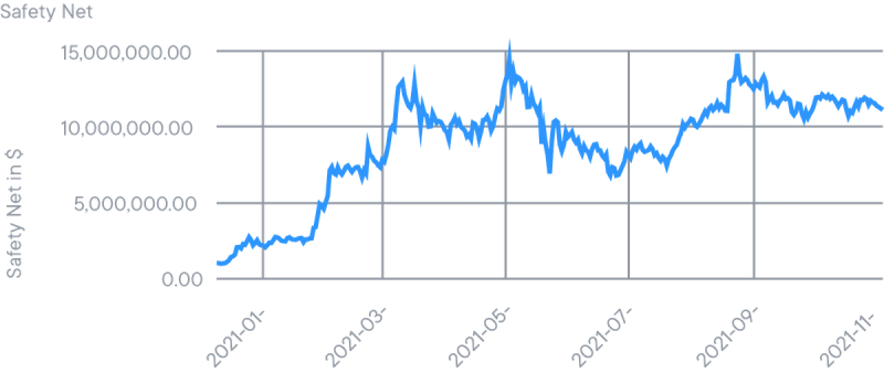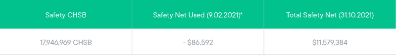 As explained in the September Yield Report, we planned to stop accruing the Safety Net. Its total value has been kept and is now following the rate of CHSB. This change happened on October 7th, for a total value of, $12,024,469. The surplus of the yield used before to top up the safety net is now used to increase the rates offered to the users.