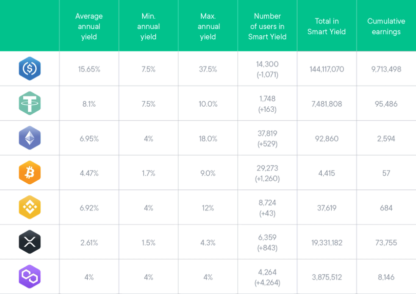 For the sake of transparency towards our community, on a monthly basis we aggregate our data to give you a report on the key figures related to SwissBorg’s Smart Yield wallets.