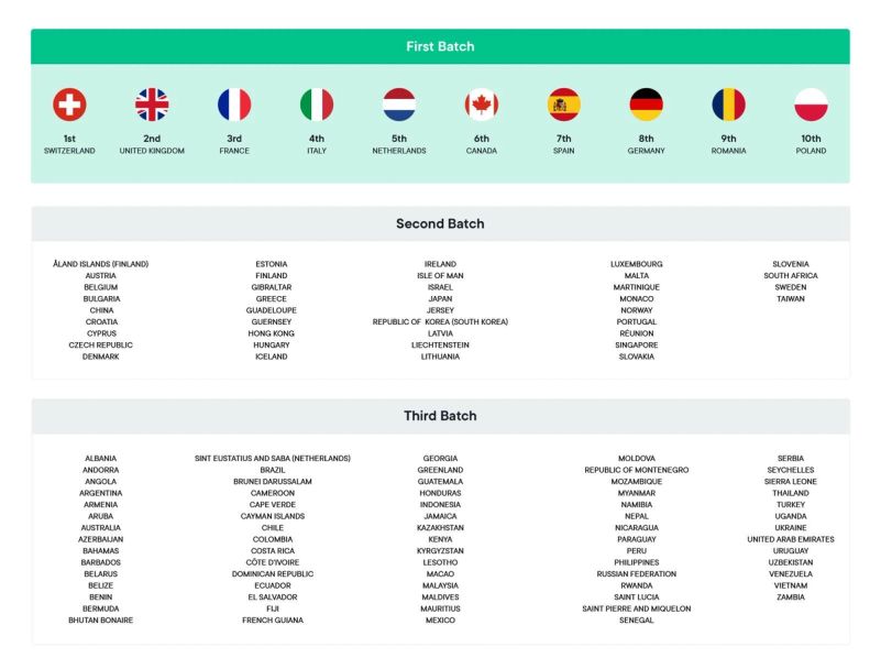 To serve our community better, we have decided to roll out our SwissBorg app launch on a country by country basis. This will be done according to our community’s contribution and presence in each country. We made this decision for a very simple reason: to make our community proud of us and to avoid disappointing you, by mitigating the risk of delay in onboarding (KYC) which could lead to bad user experience and to detrimental reviews with our mailing list of about 160,000 individuals. We will aim for a cap of 1200 daily registrations. Also, we plan to learn, iterate, and change the schedule based on the data observed. We will manage risk and scale accordingly by testing the technological assessment we have made in terms of scalability.