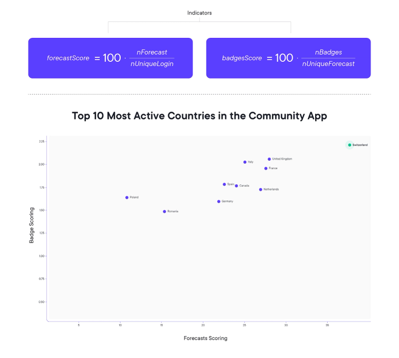 These two scores are correlated but when combined they allow us to quantify the level of commitment per country and highlight the countries with the most active and legitimate users that will have a positive impact on SwissBorg.