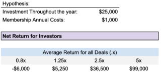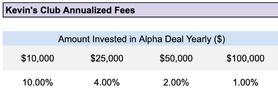 When considering the annual fees in relation to the total investment that a member intends to make in the proposed alpha deals each year:
