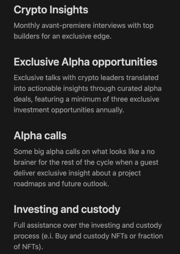 We have designed this club not for day traders but for committed long-term investors dedicated to mastering the crypto game and prioritising legacy over short-term gains.