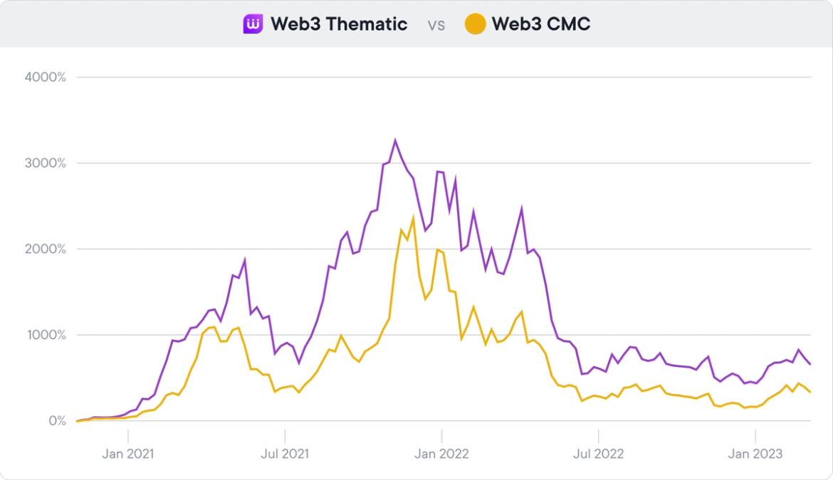Our first Web3 Crypto Bundle has been proving its competency by continuously outperforming its CMC index counterpart - with its automated Rebalancing continually buying low/selling high and its reallocation mechanism keeping it at the forefront of industry shifts.