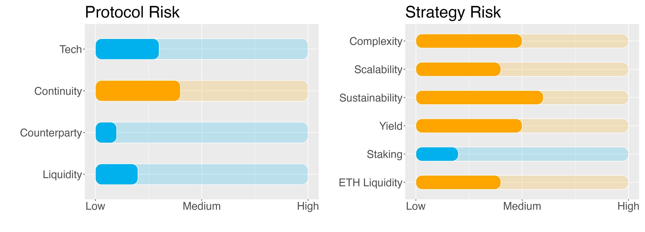 - Protokoll-Anreize - Aufgrund der Anzahl der beteiligten Protokolle ist das Risiko von Smart Contracts nicht zu vernachlässigen: Ein Angriff auf eines der Protokolle hätte Auswirkungen auf die gesamte Strategie (technisches Risiko).
