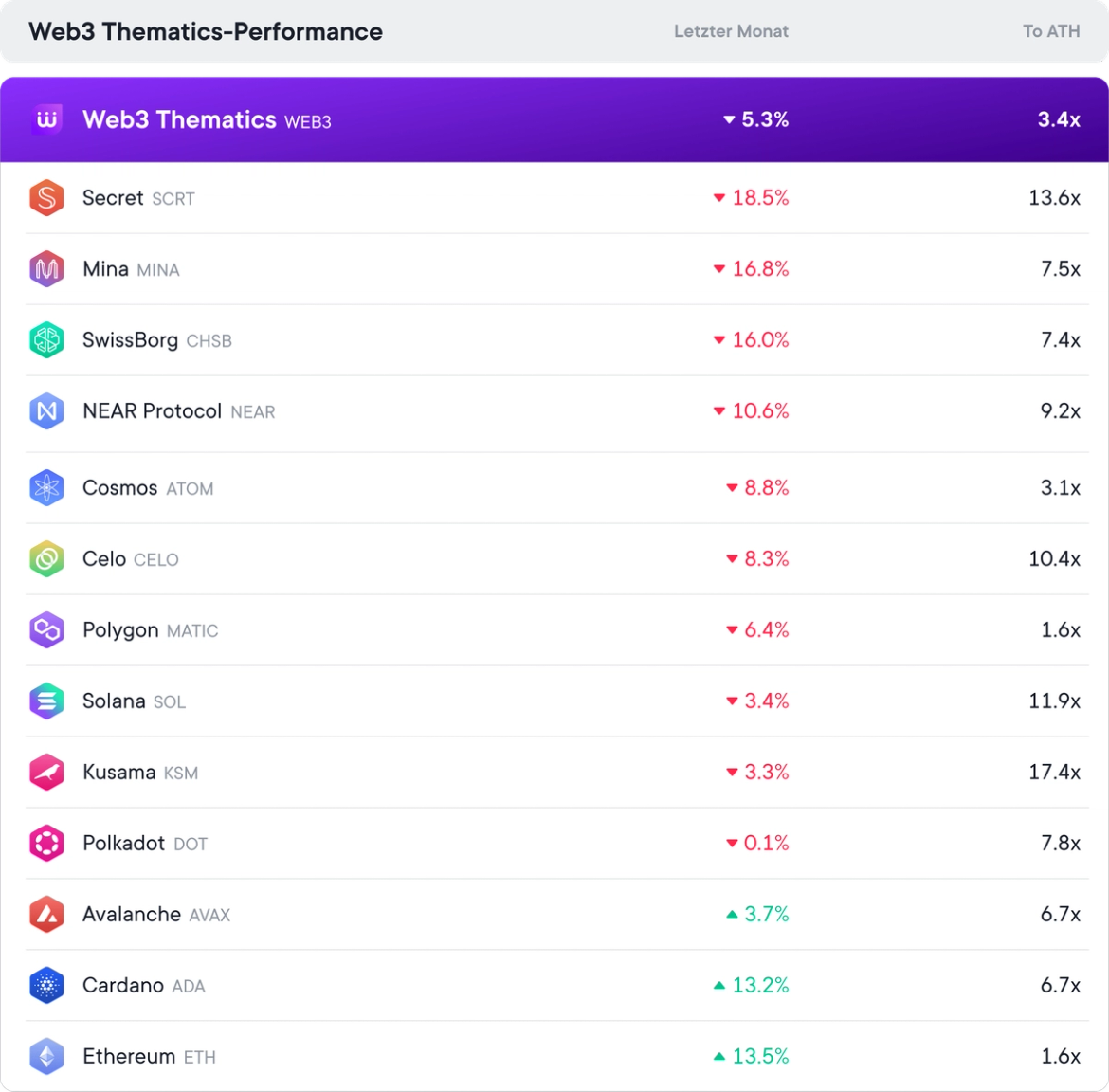 Auch wenn der März in Bezug auf die Performance nicht der aufregendste Monat war, erfüllt unsere Web3-Thematics weiterhin seinen Zweck. Sie soll den Nutzern helfen, ihr Portfolio auf einfache Weise so zu diversifizieren, dass es besser abschneidet als das breite Web3-Ökosystem.