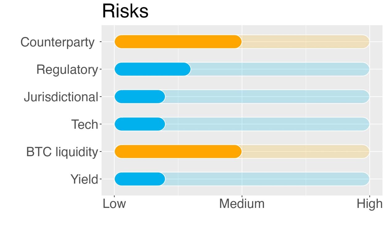 La strat égie implique une garantie entièrement on-chain, ce qui réduit le risque de crédit de la contrepartie. Cependant, comme la disponibilité de la garantie dépend d'un wallet multisig, l'accès aux fonds pourrait être perdu en cas de mauvaise gestion des clés. Nous adoptons donc une approche conservatrice et fixons le risque de crédit de la contrepartie à un niveau moyen.