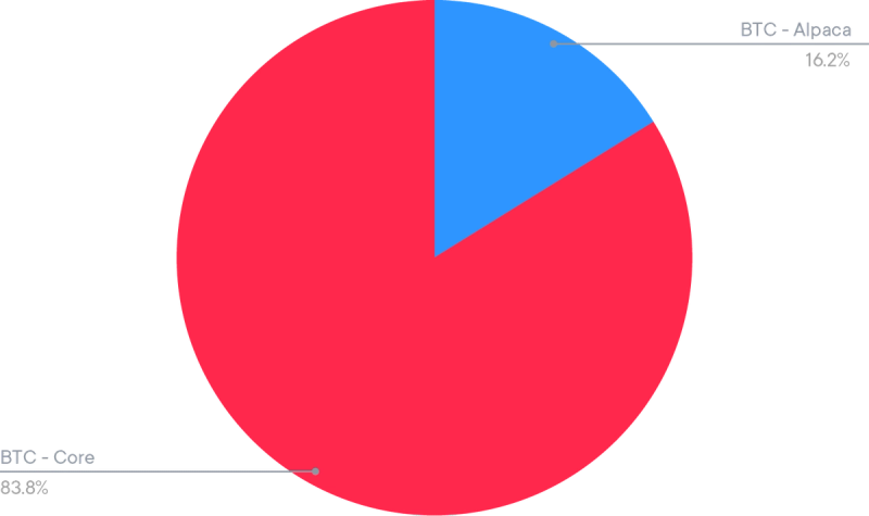 La stratégie satellite sur USDC compte un total de 1 214 utilisateurs, 4 045 utilisateurs dans la stratégie sur le BTC, et 962 utilisateurs dans la stratégie sur l’USDT. La répartition à la fin du mois d’octobre était la suivante :