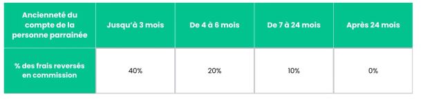 La commission que vous recevrez changera dans le temps selon le tableau suivant.