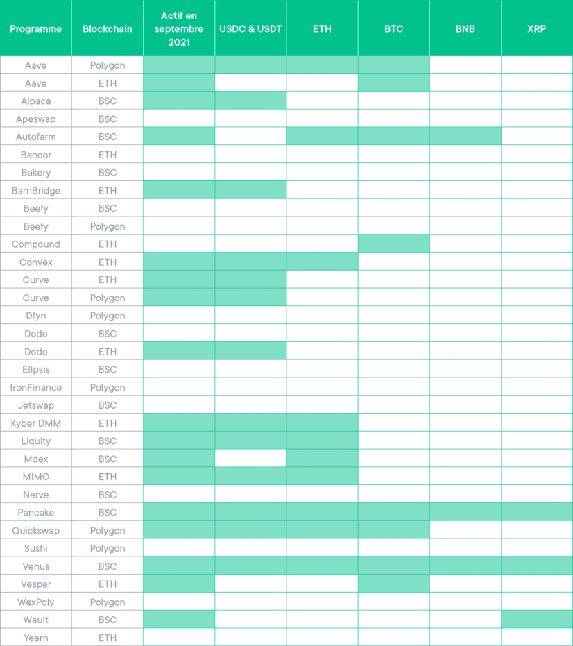 L'histoire limitée du Bitcoin a également montré que septembre est l'un des mois les moins performants, et cette année n'est pas différente. L'activité de la DeFi est généralement en corrélation avec la performance du marché des cryptoactifs, et bien que la valeur totale bloquée (TVL) n'ait pas diminué, nous avons assisté à une période de stagnation. Ceci est dû au fait que Fantom et Avalanche ont commencé à mettre en place des programmes d'incitation pour augmenter l'adoption par les utilisateurs, où les deux offrent leurs tokens natifs pour déposer des liquidités sur certaines de leurs plateformes DeFi.