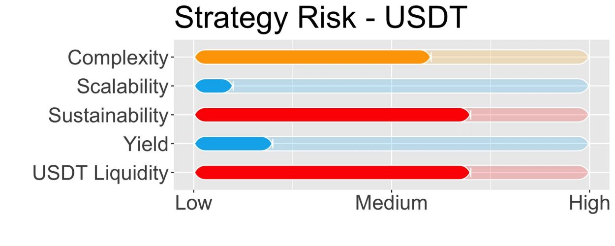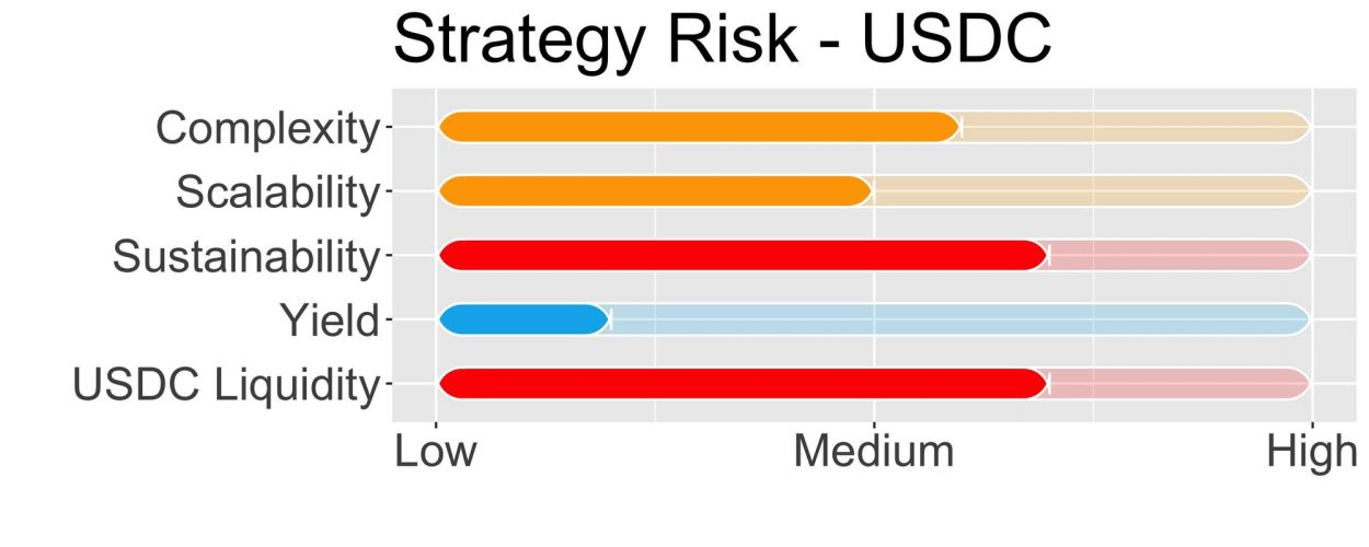 Le risque de scalabilité de la stratégie est de 5/10 pour USDC et 1/10 pour USDT.