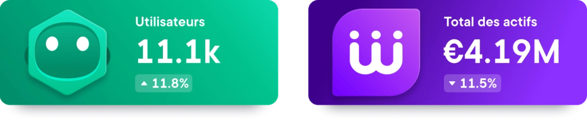 En termes de traction, la Thématique Web3 est en croissance constante, avec de nouveaux utilisateurs qui nous rejoignent chaque jour. Vous trouverez ci-dessous les chiffres relatifs au nombre total d'utilisateurs, aux actifs totaux de la Thématique Web3 et à la croissance mensuelle de ces deux aspects.