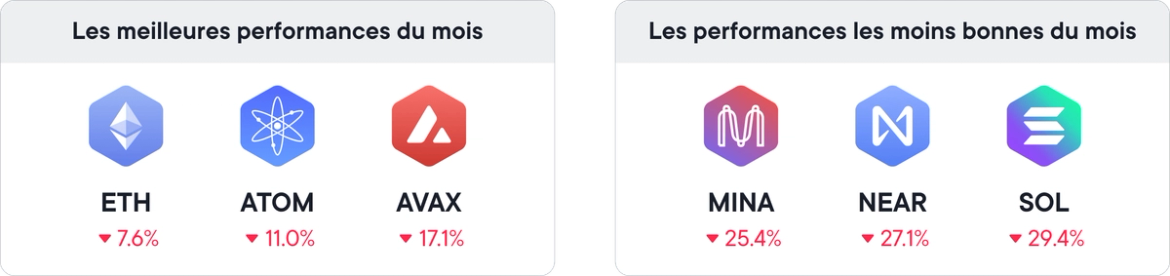 Comme le montre le deuxième diagramme, la différence entre les meilleures et les pires performances peut être très importante, ce qui met en évidence le risque et les opportunités manquées que peut représenter la sélection manuelle des tokens. En comparaison, la Thématique Web3 permet une exposition à de nombreux tokens, ce qui vous permet de minimiser les baisses et de conserver une performance stable grâce à une diversification ciblée.